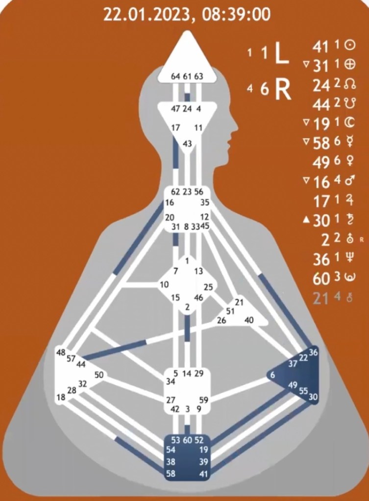 Esto de los hexagramas, puertas o claves es cómo un puzzle que da mucho juego. Si lo colocamos a nivel más profundo cómo caja lunar y planetaria podéis sacar vuestras conclusiones sobre las temáticas arquetipales que van a rular el año.
